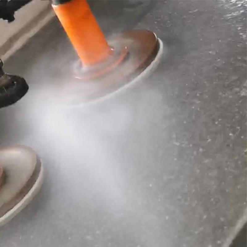 Úsáideann an Meaisín Cóireála Dromchla Snasú Marmair Uathoibríoch meascán de snasú meicniúil agus ceimiceach próisis. Déanann sé réidh le dromchla a bharrfheabhsú trí chóireáil ghrádaithe, mar a leanas: